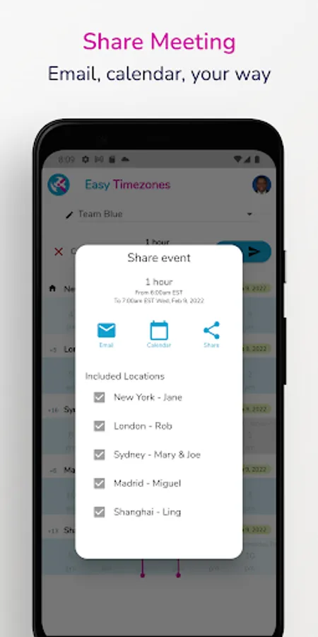 » 3. Hit send to share the invite via calendar, email or your favorite chat app