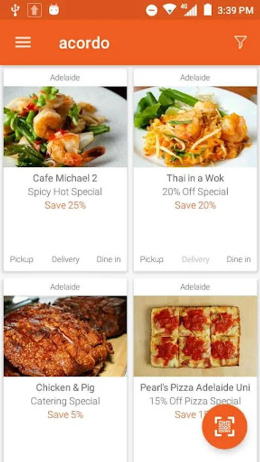 acordo allows restaurants to make offers on the fly. A slow day or new product can inspire an offer in an instant so check regularly.