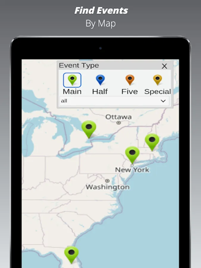 An app for outdoor events, initially designed for marathons and trekking, but any outdoor event venue will fit (cycling, races, festivals, etc.). The app hosts event based Organizations/Clubs that have content to share.