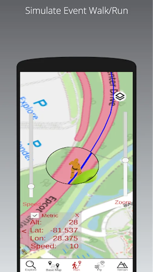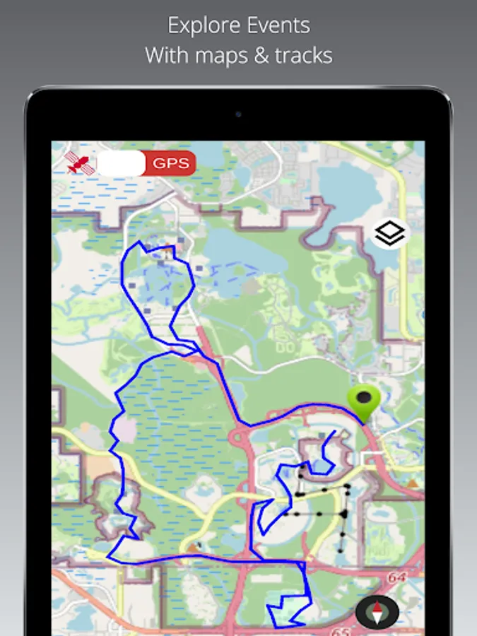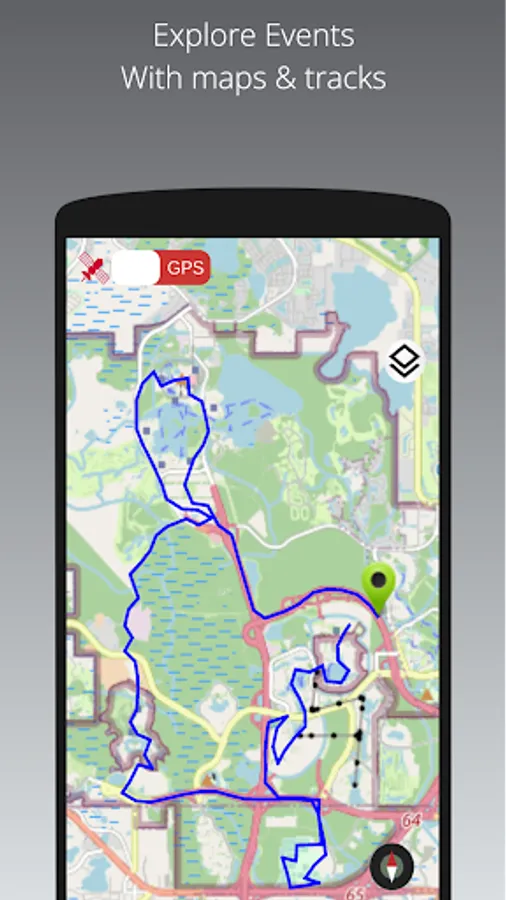 3. Event maps (online and offline) with tracks and basic GPS navigation. Plus walk, run, cycle or drive and even fly through the course using Open Street or Satellite maps.