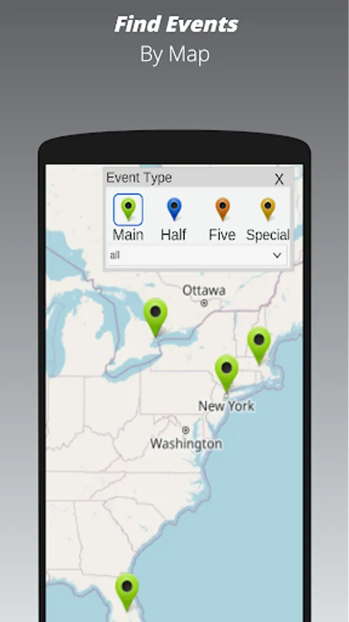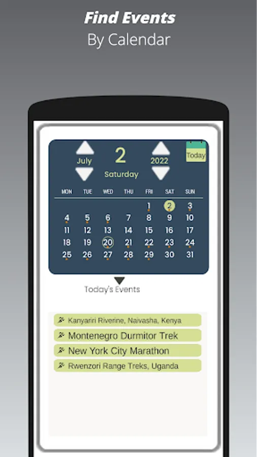 1. Explore event options from home or on the go by map, cards and calendar.