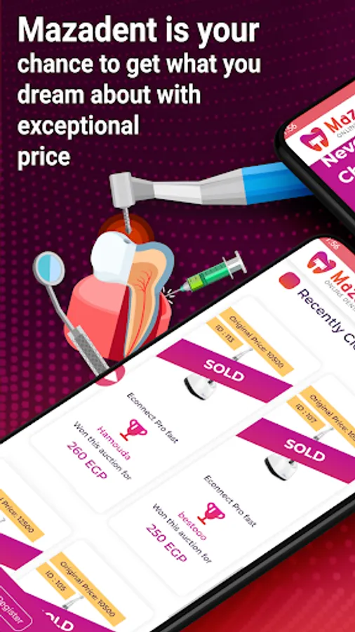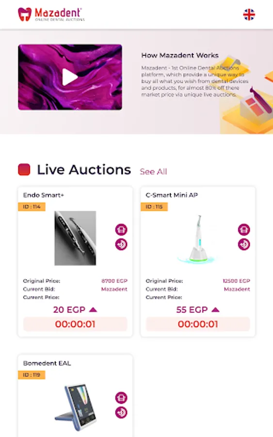 -Mazadent provides a unique way of winning and purchasing dental products and devices through running a unique seat auctions .