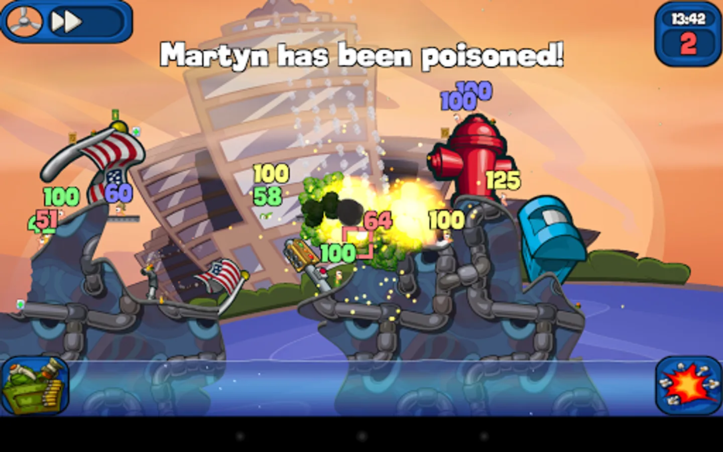 • Personalise the look of your team by changing your worms names, hat, skin, speech bank, gravestone, fort and victory dance!