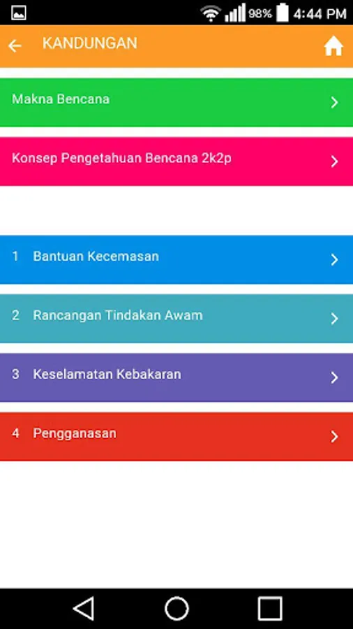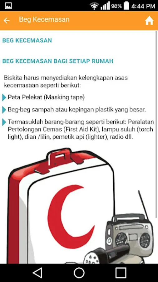 Aplikasi ini menggariskan latar belakang risiko, bencana alam dan bencana buatan manusia; tanda amaran awal serta pelan tindakan untuk orang awam dan masyarakat umum semasa menghadapi berbagai jenis risiko, bencana dan kecemasan. Aplikasi ini dihasilkan berdasarkan daripada ‘Buku Panduan Asas Kecemasan dan Keselamatan Awam’ yang telah dilancarkan oleh Pusat Pengurusan Bencana Kebangsaan pada tahun 2013 yang lalu.