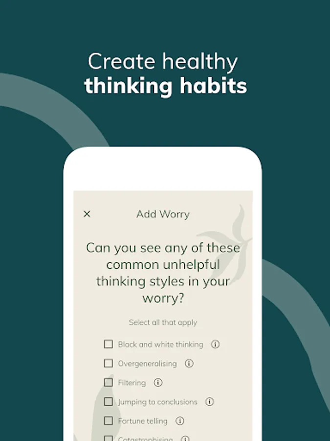 WorryTree works like a guided journal for you to track your thoughts and emotions, manage your worries, encourage self-reflection, and ultimately improve your mental health.