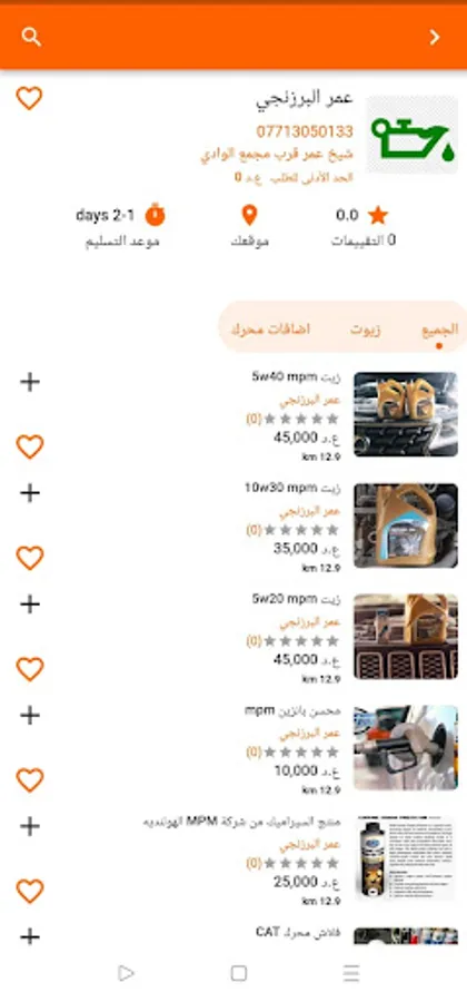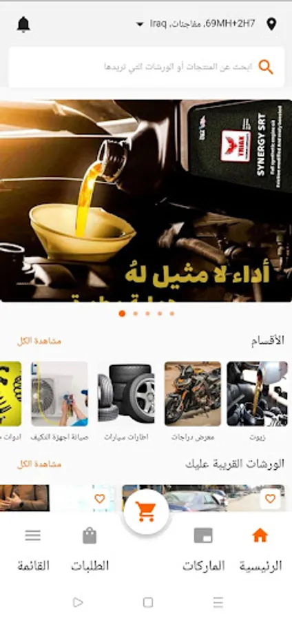 When the customer launches the application, the locations of the stores that sell oils and engines closest to him are displayed through the application map, and contact information, working hours, and the items available in each store are displayed.