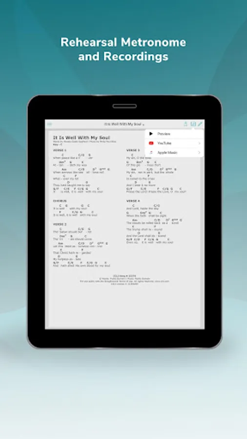 - Integrated metronome and links to full songs via Apple Music, Spotify and YouTube.