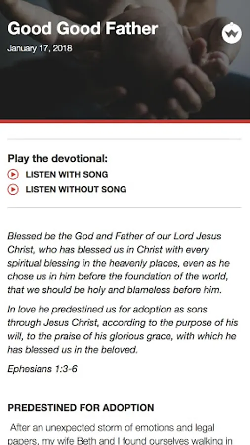 This free daily devotional app from the writers at The Worship Initiative is designed for daily communion and worship. Each devo includes a worship song, a devotional, and scriptures. It is available in a read-only format and in audio format.
