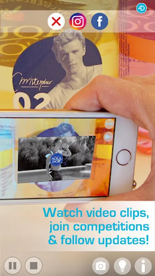You can also take a photo during scanning and share it on Facebook and Instagram. Use the camera icon in the bottom menu, that appears when the scanning is activated with the video.