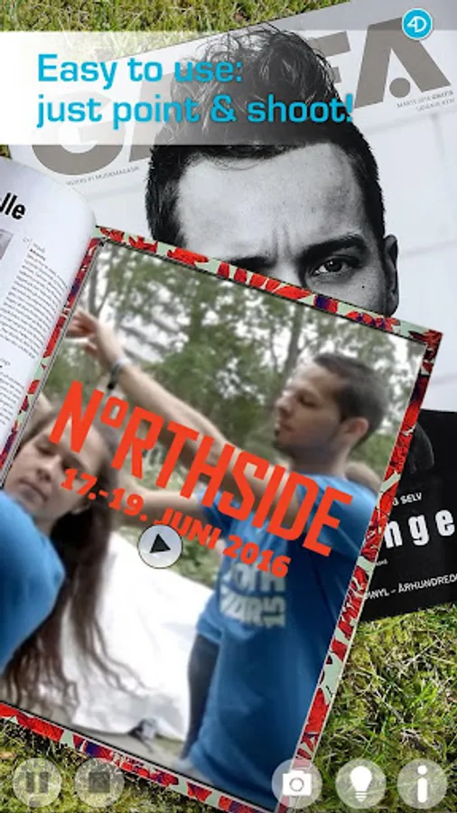 Explore objects brought to life on the screen of your device, simply point the device towards a 4Dscan prepared object to watch the video clip.