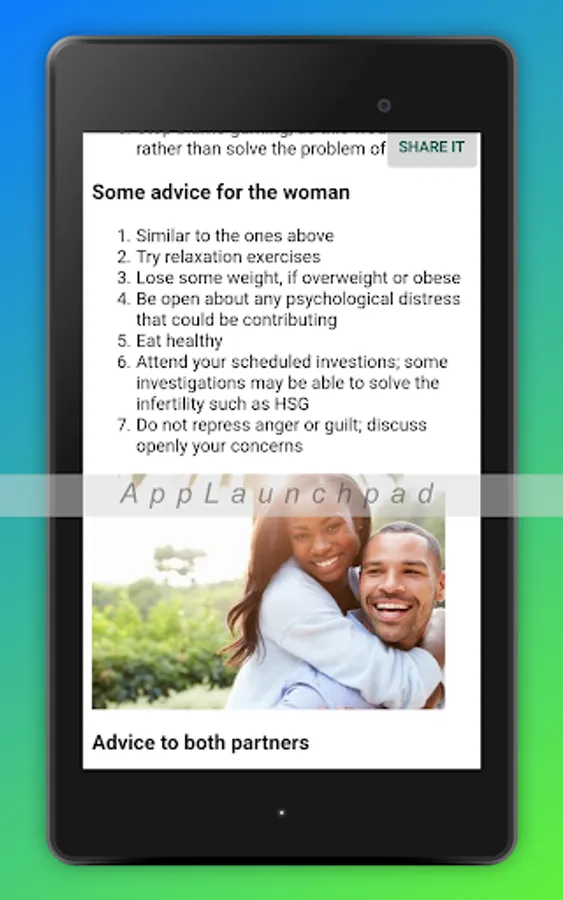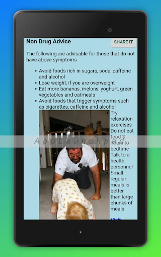 This app provides information to the public, health professionals as well as patients regarding the kinds of medical advice that would be readily given if we were discussing with them in the clinic and or in an academic situation.