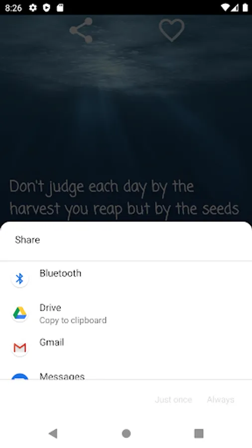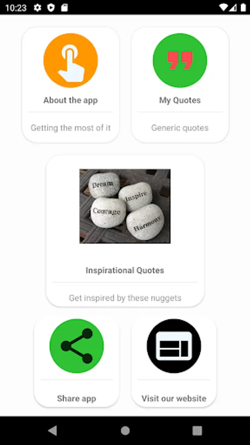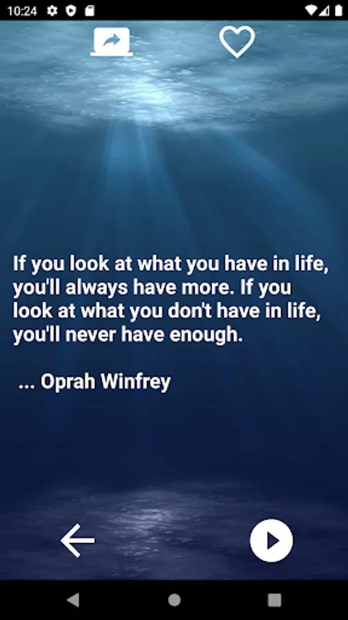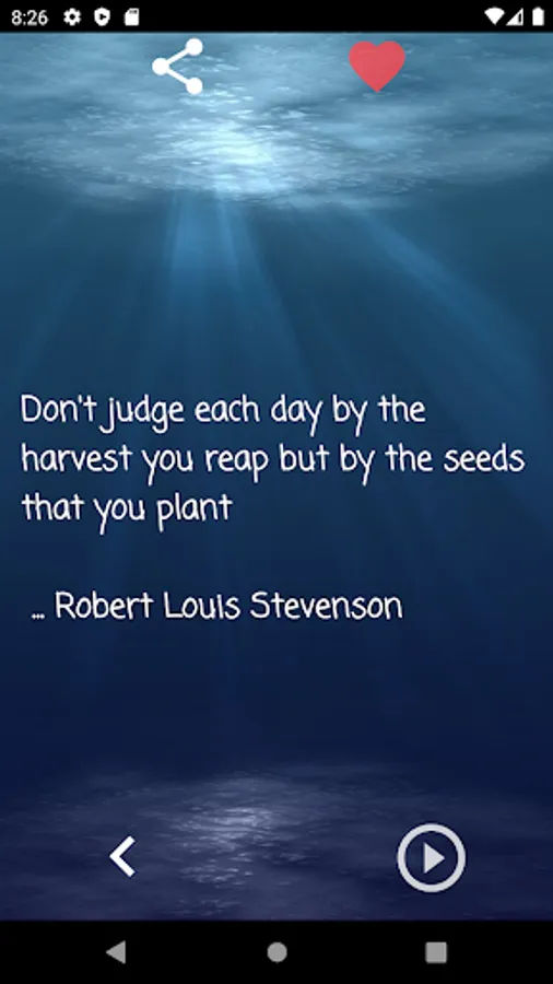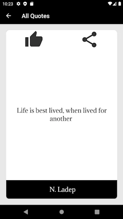 A clean display interface and with buttons to allow you share the quotes to your favourite social platforms.