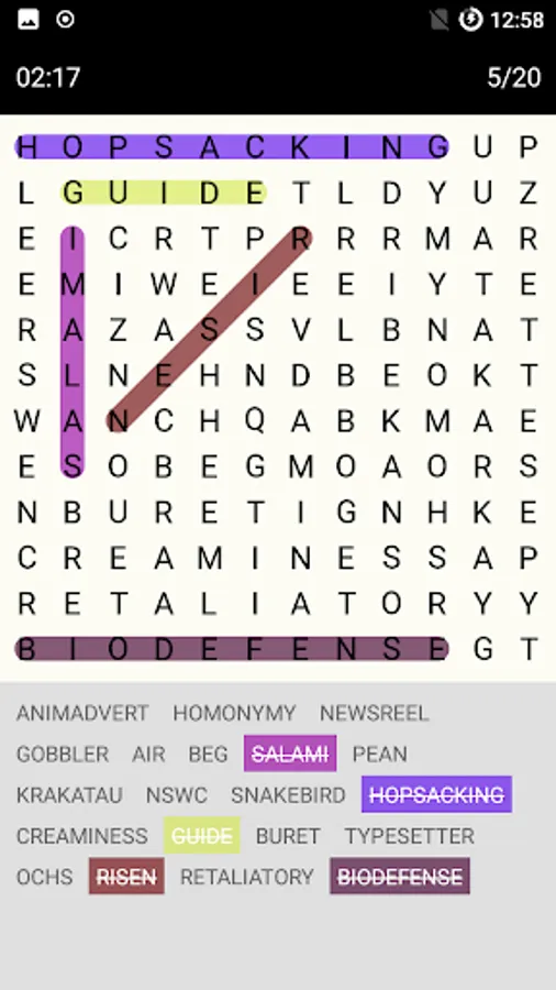 Many people like word search games so we made our own. You can play with different difficulty levels from easy, medium, hard to very hard to search for word.