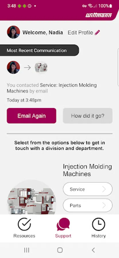 WITTMANN is on the side of its customers– always committed to providing the best experience possible. With WiConnect!, we’ve made staying in touch with WITTMANN easier than ever. WiConnect! is an easy 3-in-1 communicator so you can reach us when you need us.