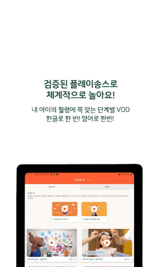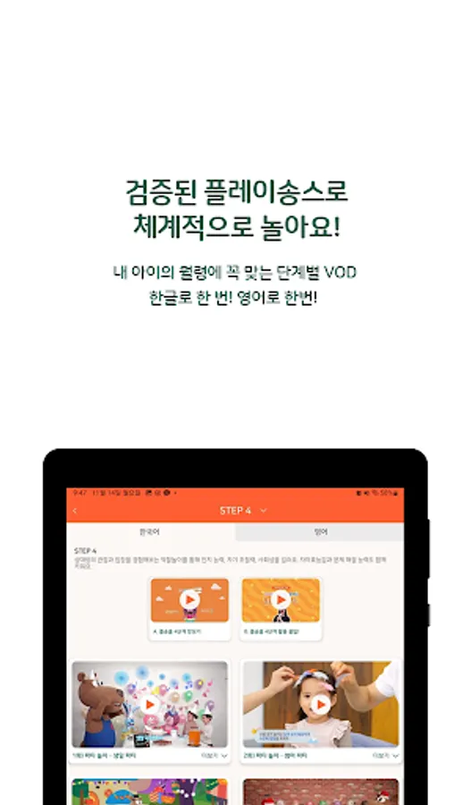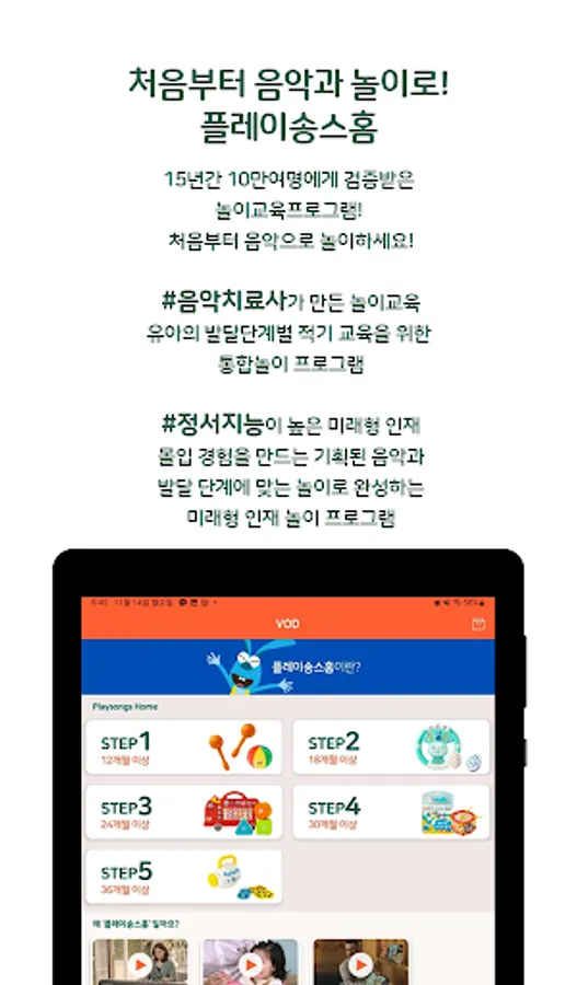 플레이송스홈 app 내에서 단계별 영상 시청을 위해서 단계별 패키지 영상을 구매해 주세요