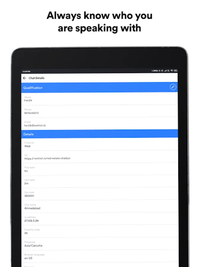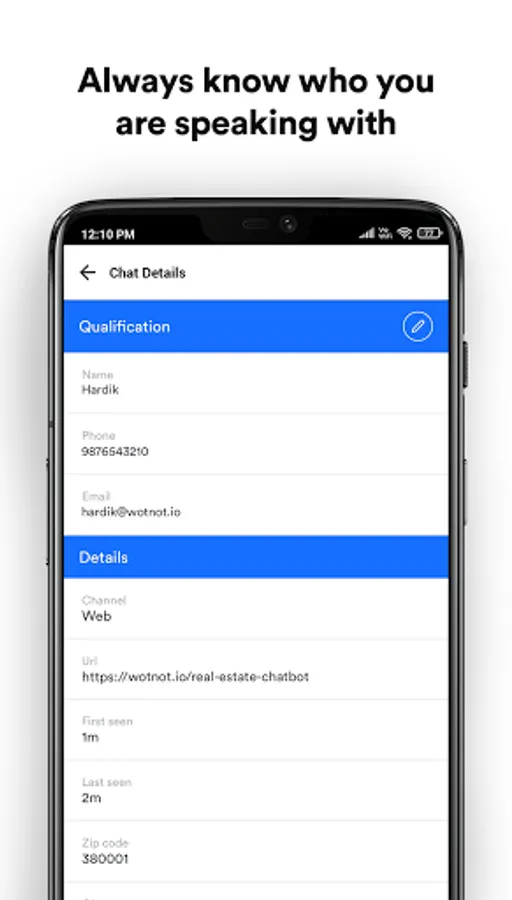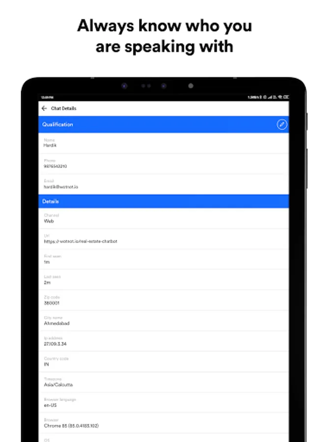 View and assign chats to your teammates based on the visitors' replies, and see more details about each visitor like city, country, zip code, and other qualification details.
