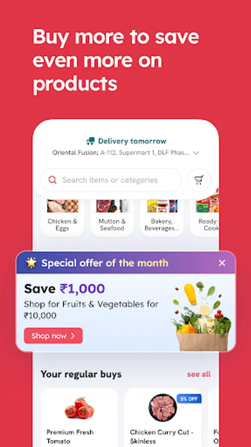 Choose from a catalogue of over 2000 products and have your supplies delivered to your doorstep in a time slot of your choice. You can make payments via credit card, debit card, net-banking and UPI.