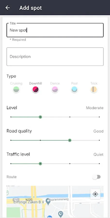 With this app you can find longboard spots and routes based on your own location. All these spots and routes are submitted by users worldwide.