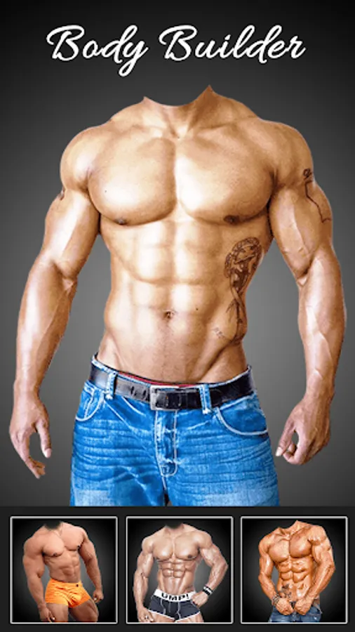 Make body building photos with this Tattoo Body Editor. It has Sixpack and tattoo, It is a perfect Six Pack Face Changer with stylish fashionable body. With the new Six Pack Photo Editor you can do Six pack Adjustments, create six pack and become Packs Photo Designer.