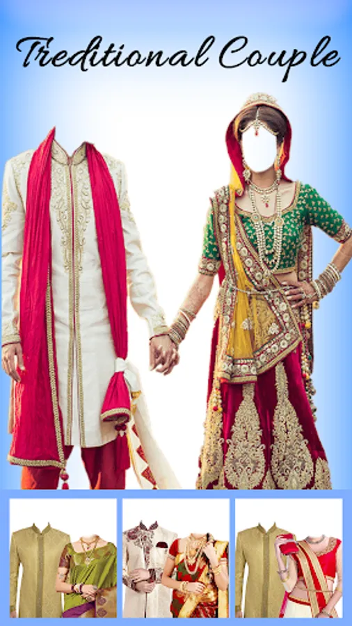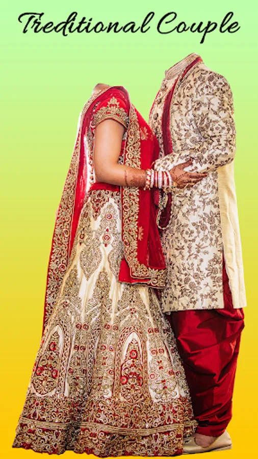 Traditional Couple Maker Photo Suit camera app gives traditional couple dress up by adding your cool photos in to variety of Most Beautiful Indian Couple HD Traditional Dresses!