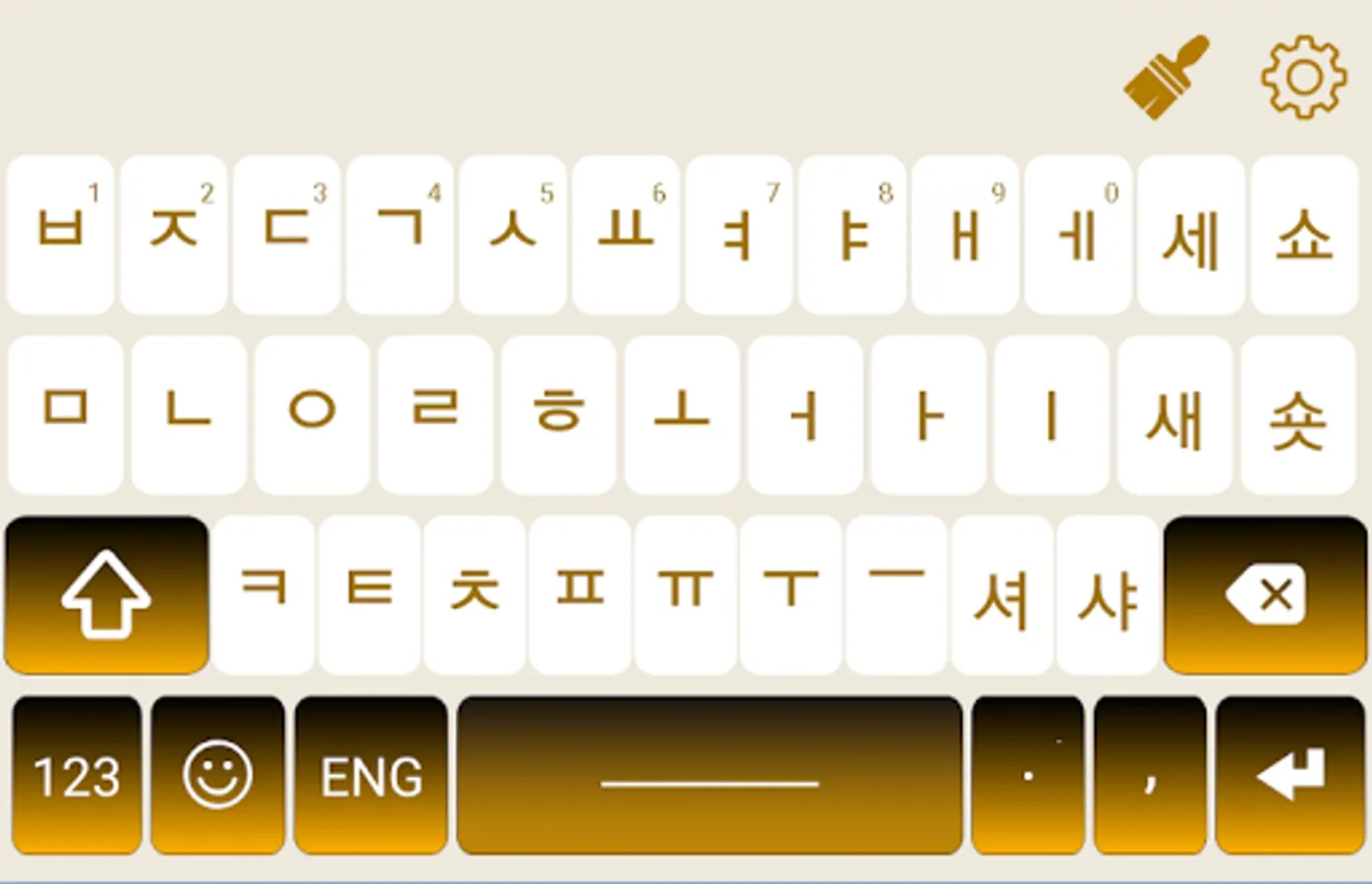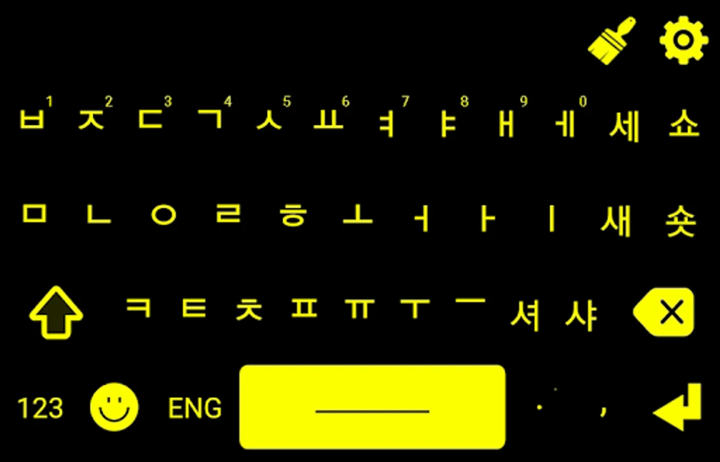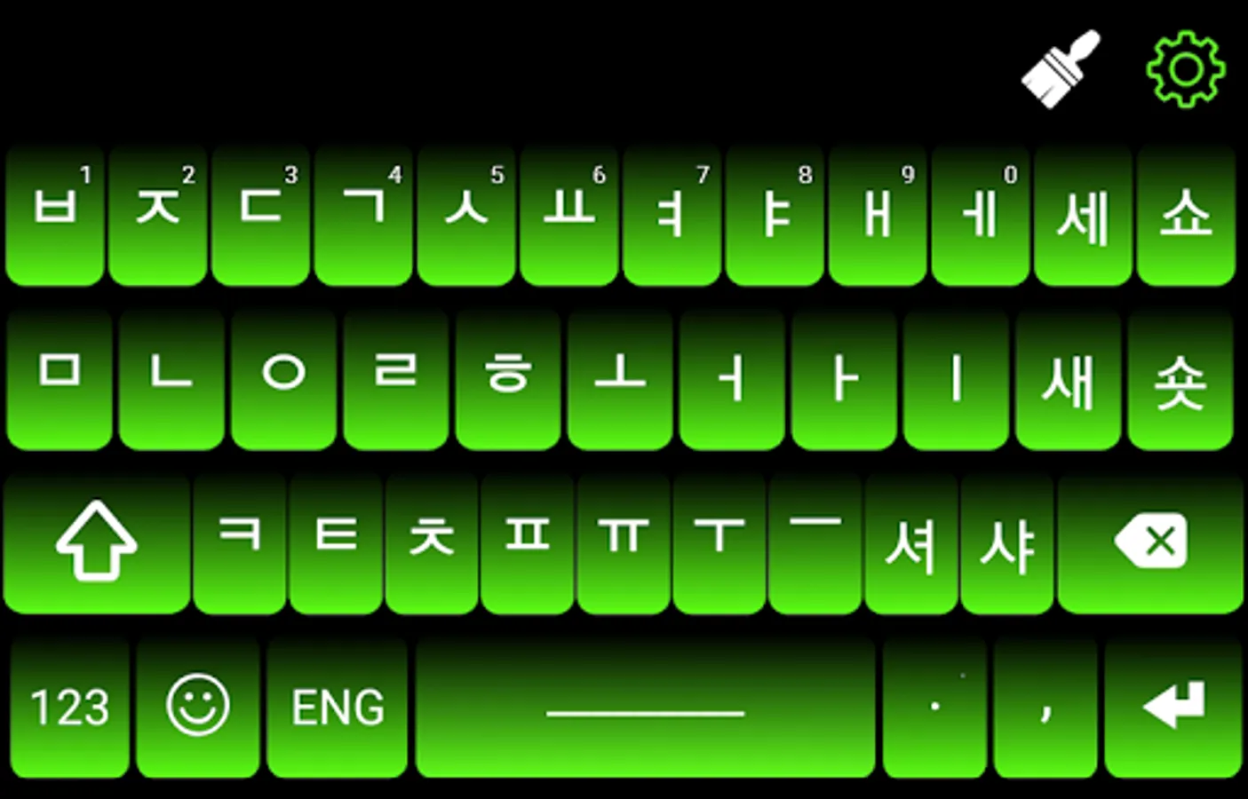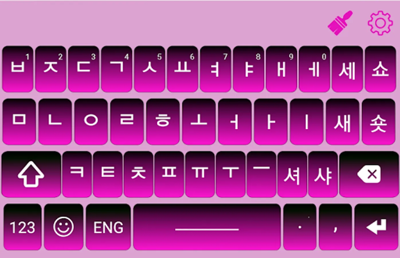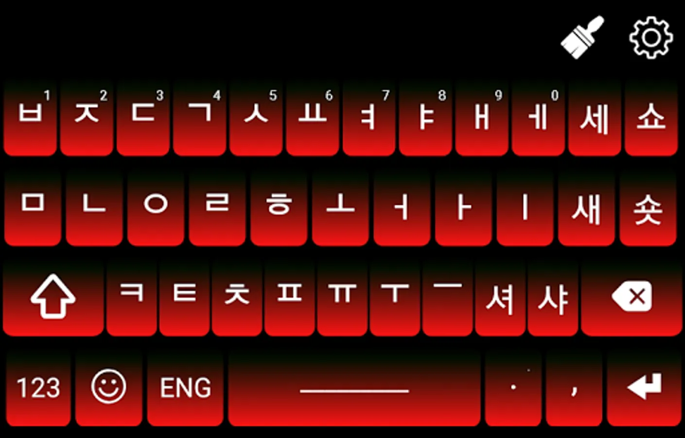Korean Keyboard have option to switch language you can type English and Korean fast typing using Korean switch button. if u want to type English then press Eng. button and a English keypad will be show and you can type your text message in English language. if you want to type your text message in Korean then you need to press Korean button. A Korean language keypad will be shown and you can type and text in Korean language