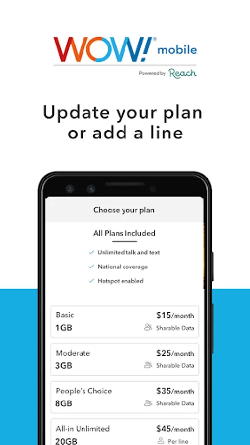 WOW! is one of the nation’s leading broadband providers, offering high-speed Internet, TV, and phone services. WOW! mobile powered by Reach offers affordable wireless plans that run on America’s largest, fastest, and most reliable 5G network.