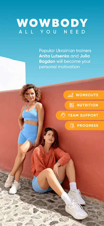 WOWBODY has everything you need to lose weight and improve your health, effective fitness, and workouts to achieve your goals. Legendary Ukrainian trainers Anita Lutsenko and Julia Bogdan will become your personal motivators, taking care of your daily workouts.