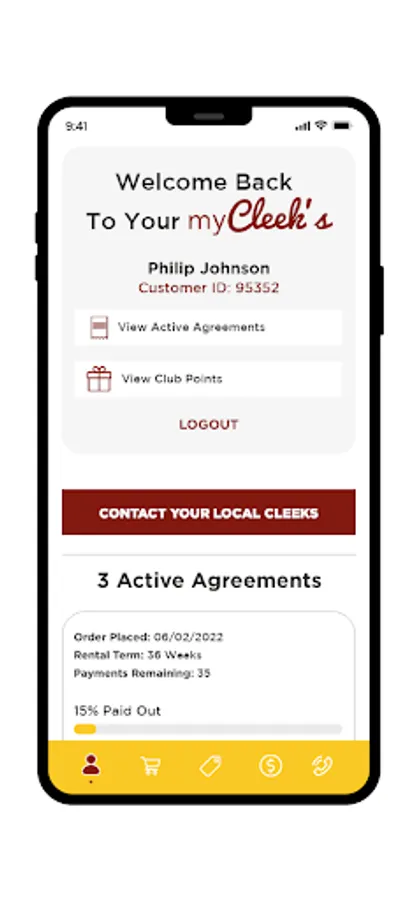 The Cleeks Rent To Own mobile app allows customers to manage their account , Shop products, Receive discounts, and Contact support