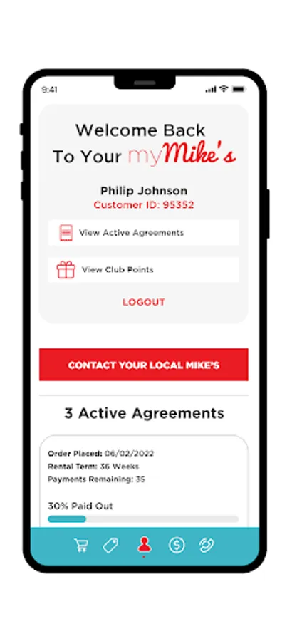 The Mike's Rent To Own mobile app allows customers to manage their account , Shop products, Receive discounts, and Contact support
