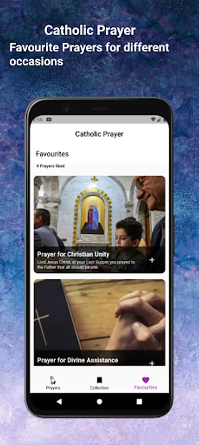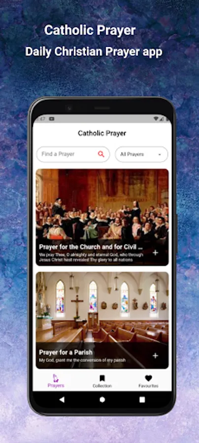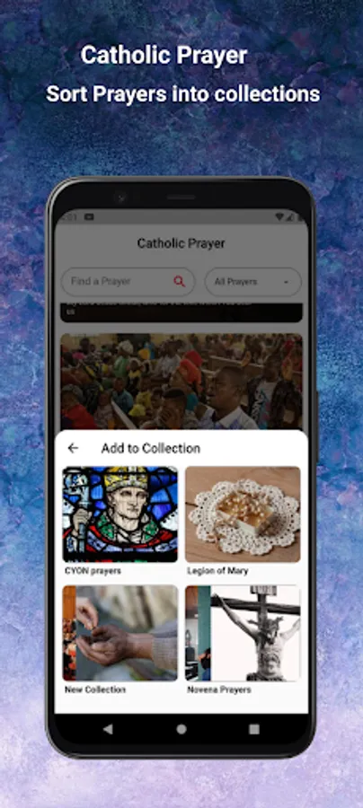 It allows you create Prayer Collections for group of prayer you frequently say such as Daily Prayers, Novenas Prayer group Prayers etc. Then you can easily add any prayer to collections for easy access.