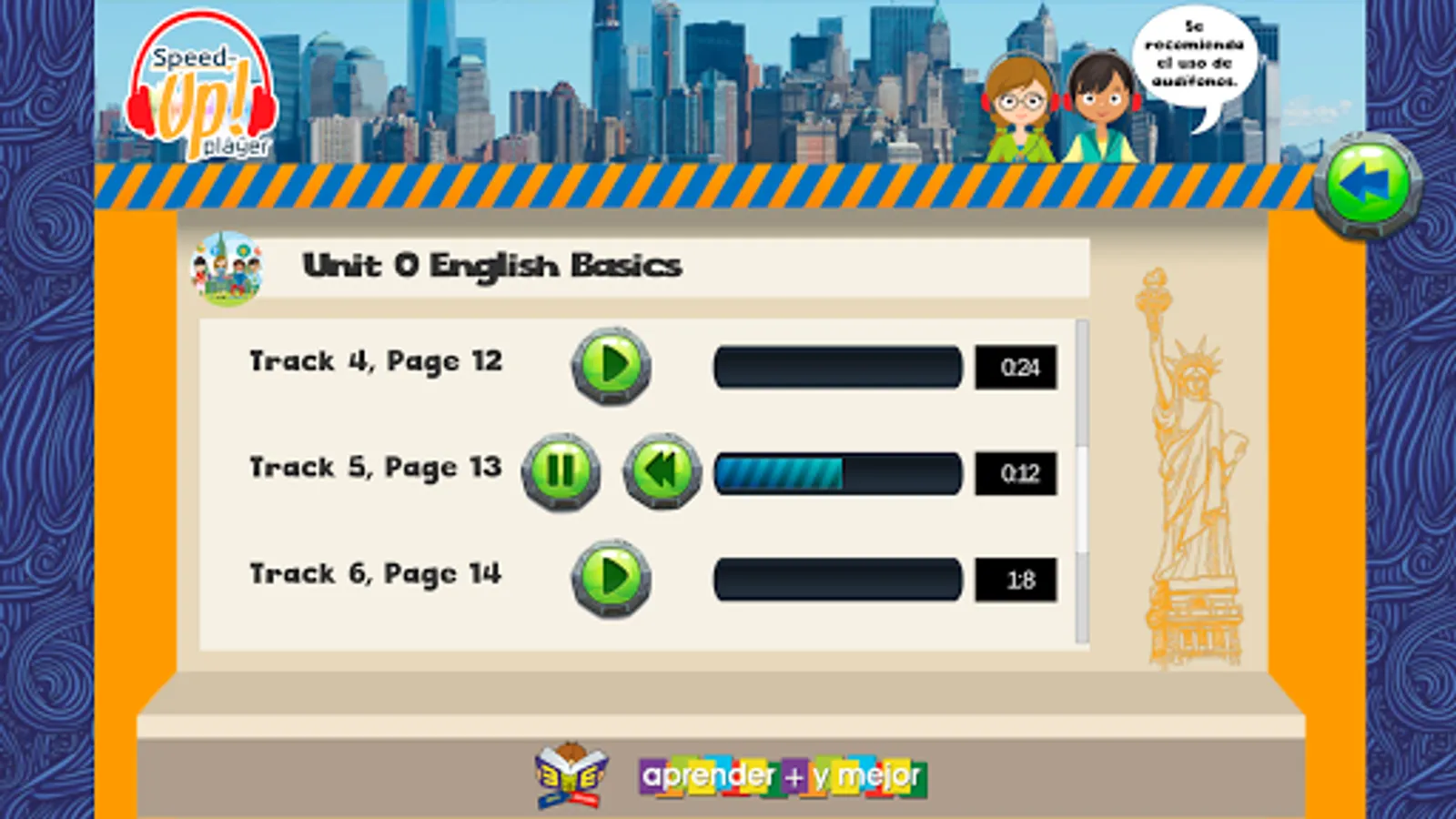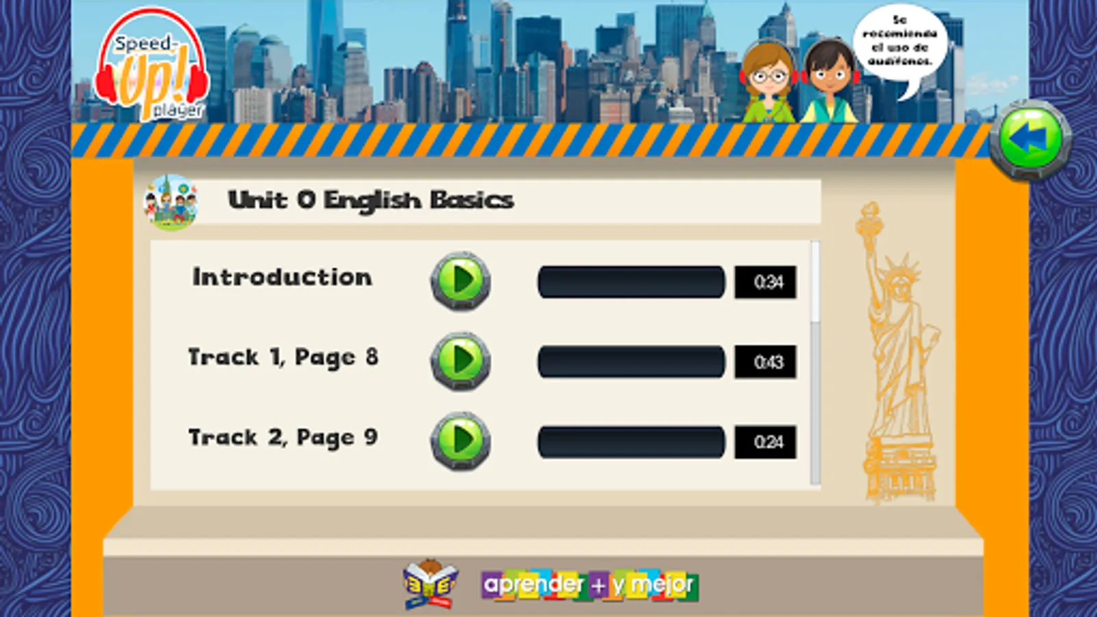 Speed Up! Player is a free application that allows you to have access to the audios of the Speed Up! Book series. of Eduvisión.