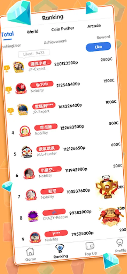 ●Social function. Chatting with people in the coin pusher machine, join the coin pusher group and making friends!