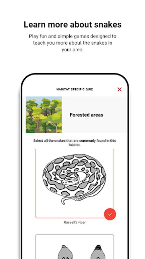 Users can play a wide range of games to help them learn how to recognize different snake genera/species, the signs & symptoms of snakebite envenoming, the preferred habitats of the venomous snakes found where the user lives, and the Dos & Don’ts after a snake bite.