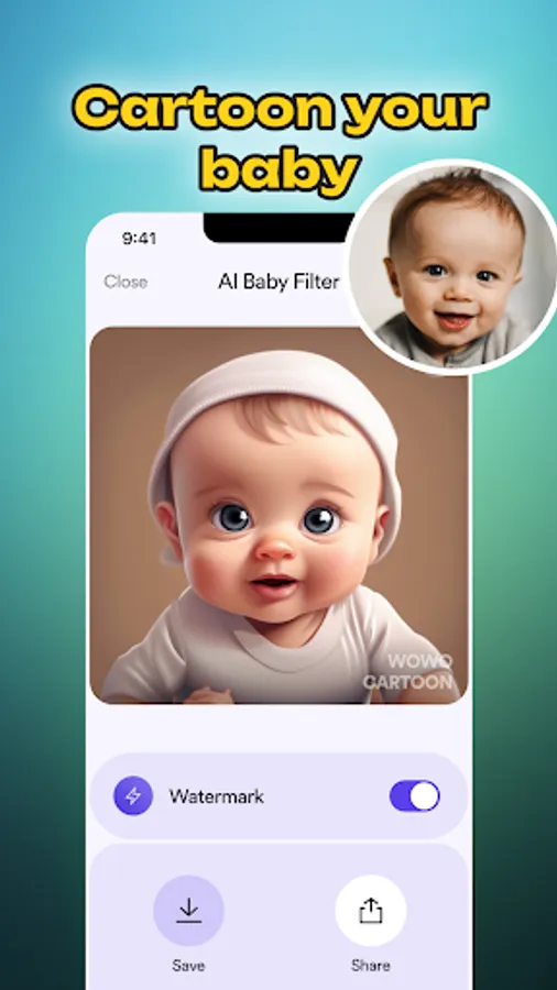 3. Customize & Share: Personalize your cartoon with our filters and styles, then share your masterpiece directly on your social media platforms.