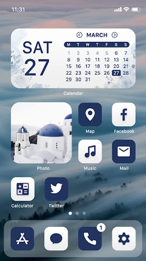 - Supports three widgets: calendar, photo, clock and more designed in midnight blue style