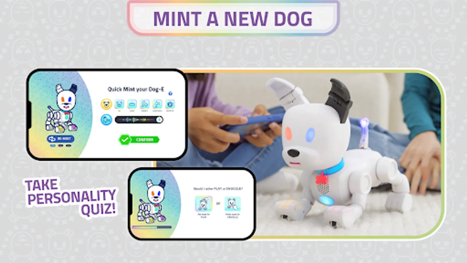 No Dog-E toy? No problem! You can Quick Mint one in a million Dog-E profiles in the app even without the toy. Even name your dogs. When you get a Dog-E toy, you can load those profiles onto your toy to bring them to life.
