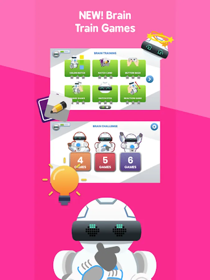 • Color Match: Match colors in the app to MiP™ Arcade's chest light. How many colors can you match before time runs out?