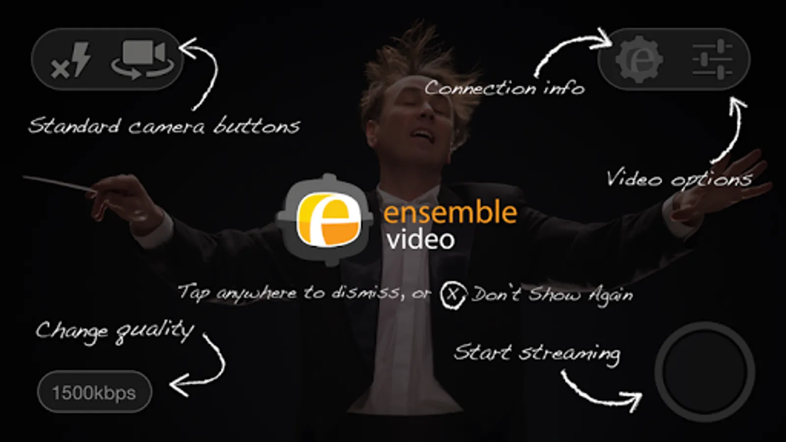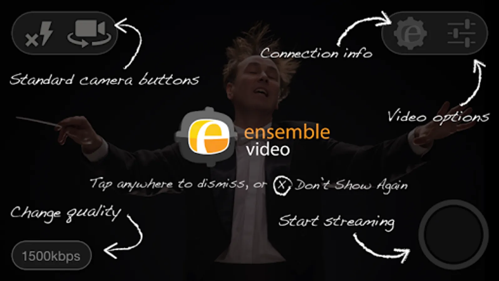 The EnsembleLive app from Ensemble Video is a live video and audio streaming application for Android Phone or Tablet. Use the EnsembleLive app to broadcast anything on-the-go from any location to any screen. You can also use Ensemble Video’s Live Capture feature to record live content to your Ensemble Video media library while streaming live video and audio in real-time over wireless networks.