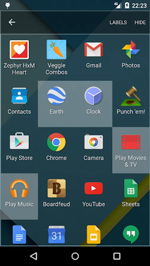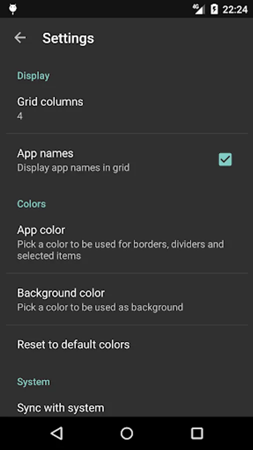 Change the visual look and feel of the app organizer via settings. You can for example change colors, grid size and remove app names.