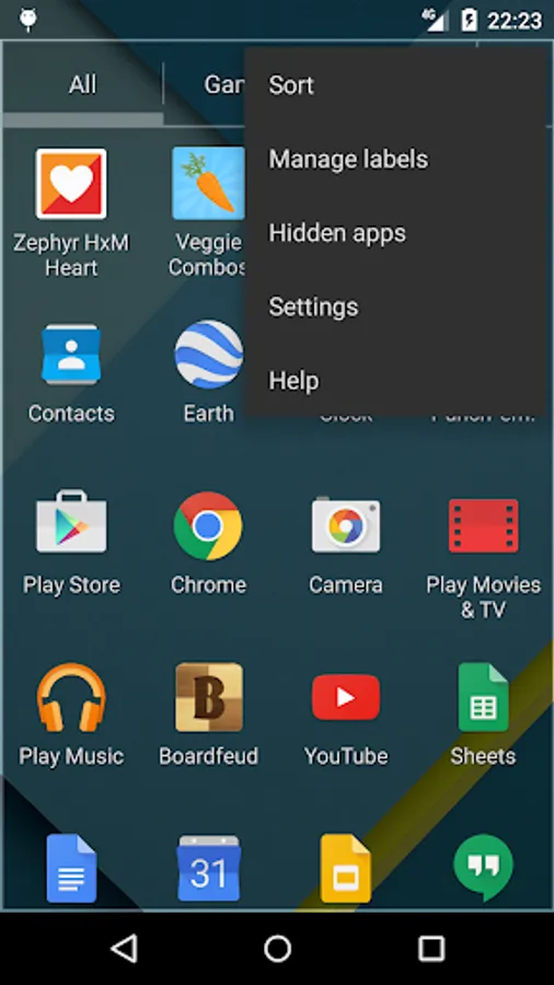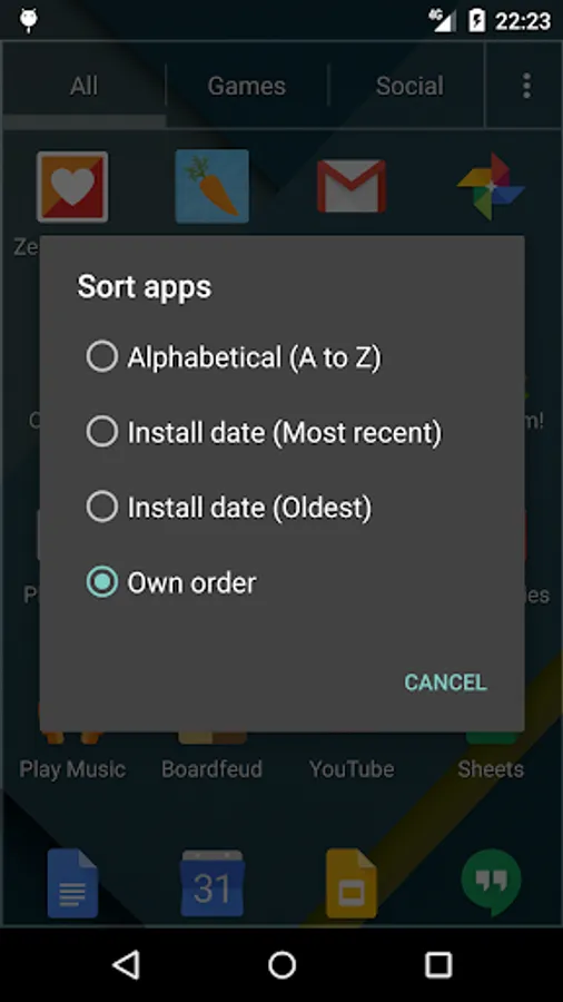 Choose between alphabetical, install date or your own order as a sort order.
