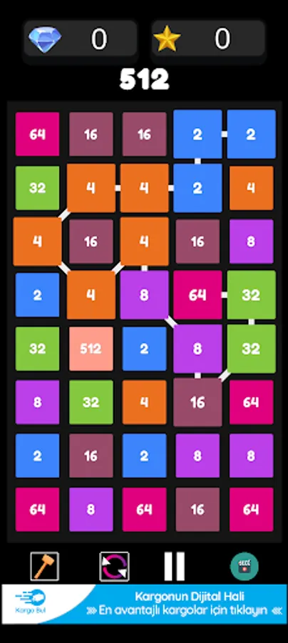 -Aynı numaralı blokları yatay veya dikey olarak kaydırarak birleştirin.