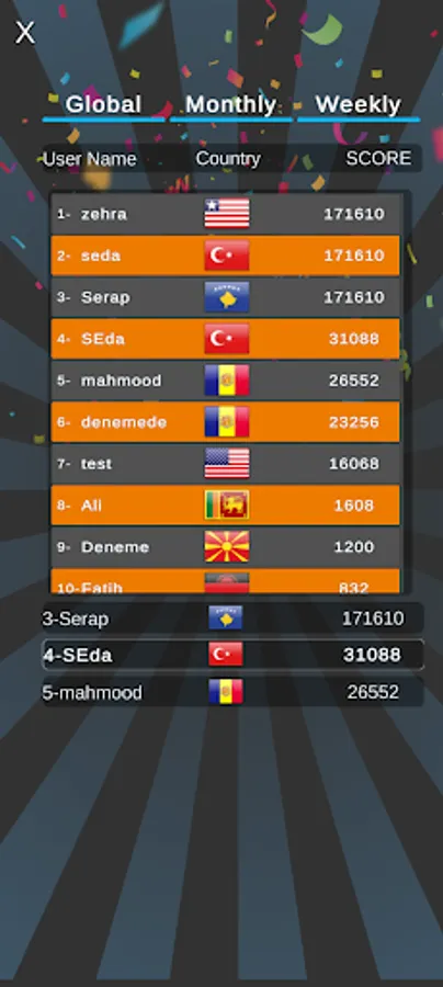 -Küresel skor tablolarıyla rekabet edin.