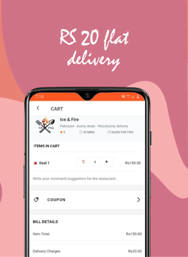 Get delivery fee off your first order with a minimum subtotal of Rs99 (excluding tax, tip, delivery fee). Just use code BUNNY