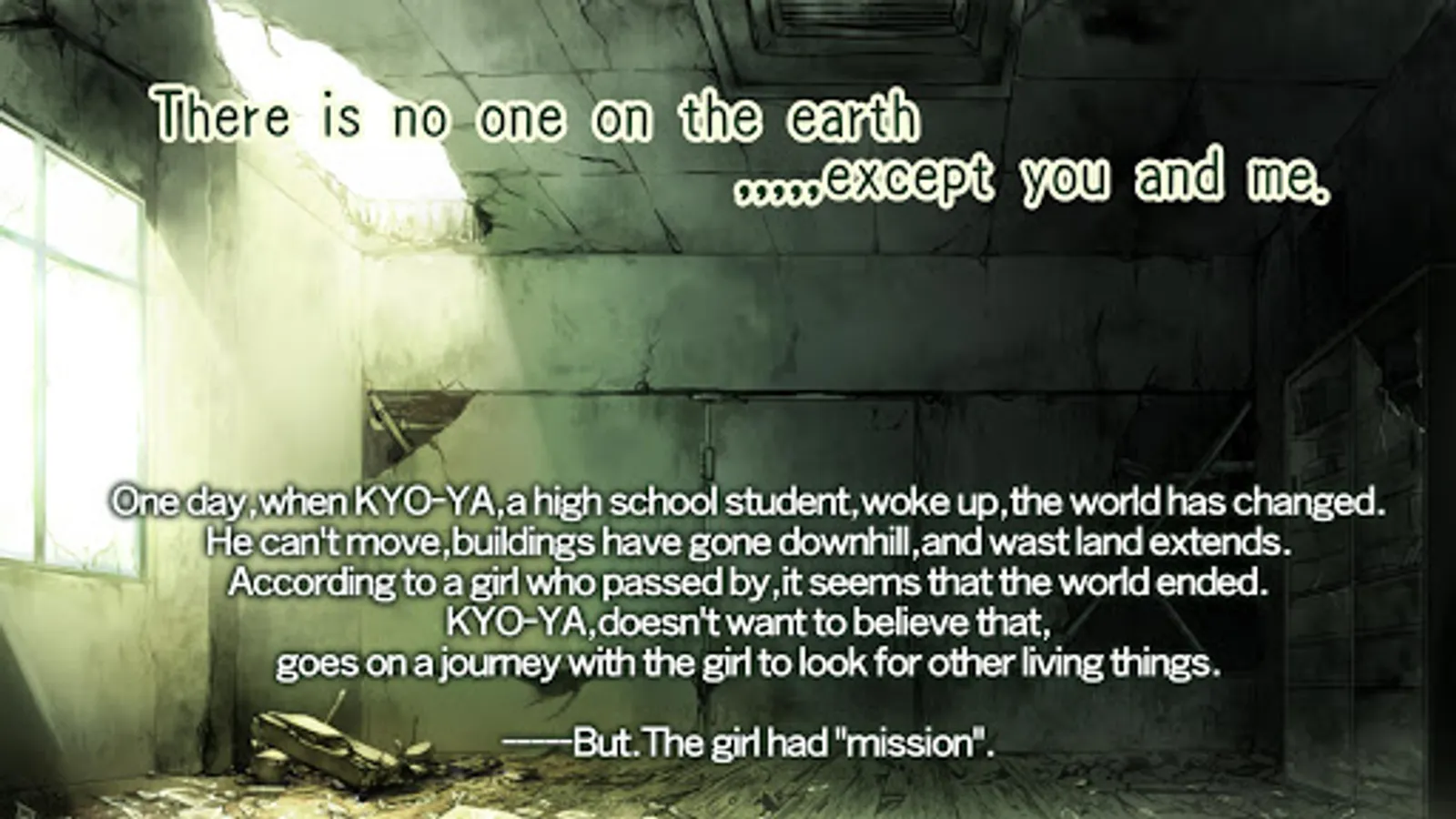KYI-YA,doesn't want to believe that,goes on a journey with the girl to look for other living things.
