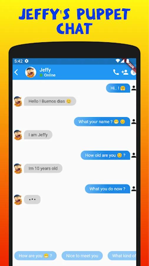 With the Jeffyy Prank Call & Chat App, you can also enjoy chatting with Jeffy through a simulated conversation. The app has a cool and friendly design that makes it appealing to use.