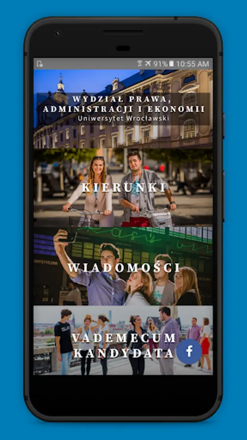 The application provides candidates for studies with all useful information about the programs of study at the Faculty, the renowned University of Wrocław, the bustling city of Wroclaw and exciting student life. The application contains six functionalities:
