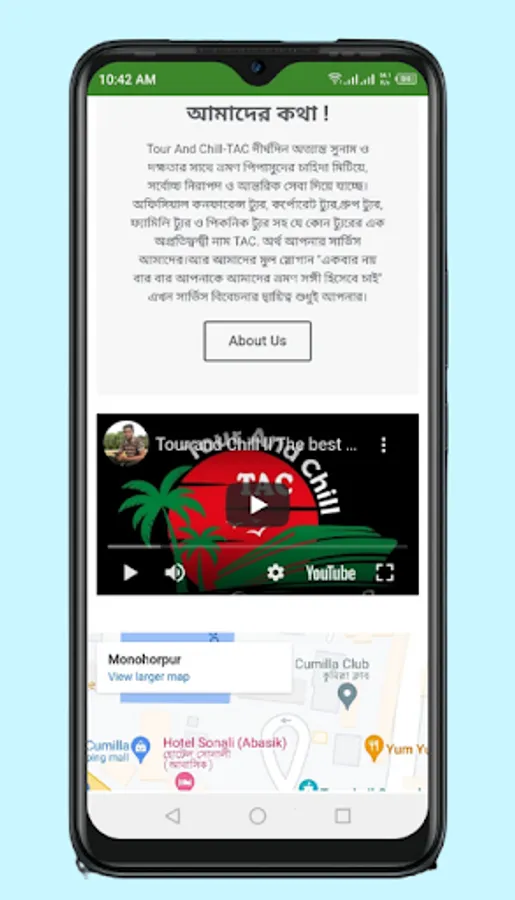 Tour And Chill-TAC দীর্ঘদিন অত্যান্ত সুনাম ও দক্ষতার সাথে ভ্রমণ পিপাসুদের চাহিদা মিটিয়ে, সর্বোচ্চ নিরাপদ ও আন্তরিক সেবা দিয়ে যাচ্ছে।অফিসিয়াল কনফারেন্স ট্যুর, কর্পোরেট ট্যুর,গ্রুপ ট্যুর, ফ্যামিলি ট্যুর ও পিকনিক ট্যুর সহ যে কোন ট্যুরের এক অপ্রতিদ্বন্দ্বী নাম TAC. অর্থ আপনার সার্ভিস আমাদের।আর আমাদের মুল স্লোগান "একবার নয় বার বার আপনাকে আমাদের ভ্রমণ সঙ্গী হিসেবে চাই" এখন সার্ভিস বিবেচনার দ্বায়িত্ব শুধুই আপনার।