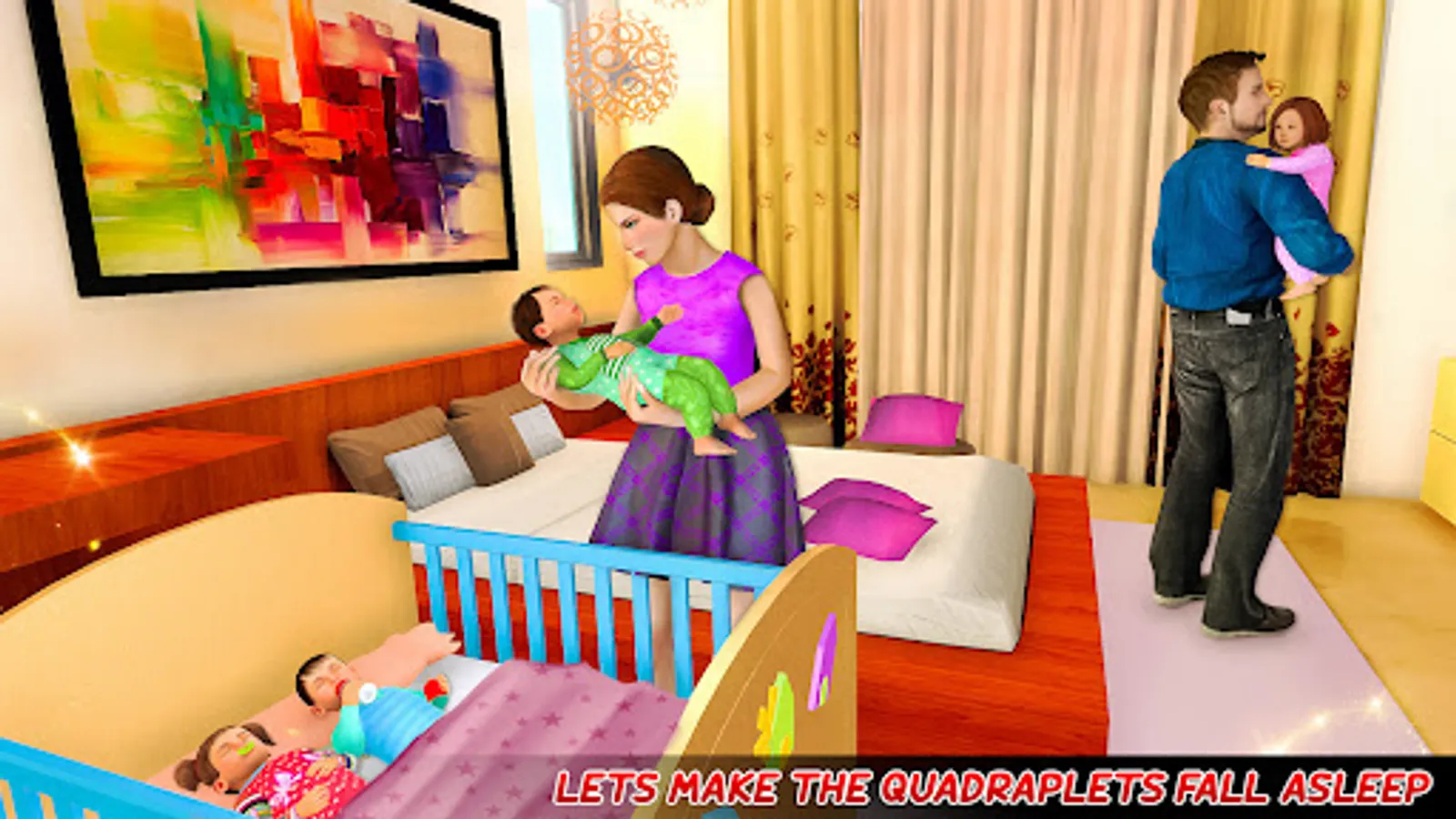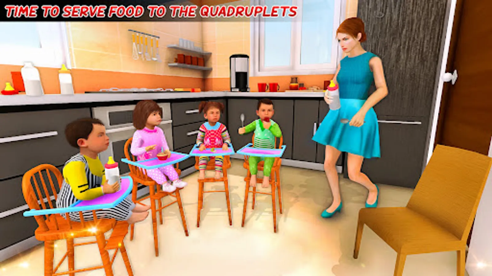 Newly Happy mother is feeling awesome, expecting baby quadruplets making her home and family complete. Time to enjoy the best character simulation games in this family filled fun to step into the boots of a happy mother and wife. Managing the household tasks and being the babysitter to her cute baby quadruplets. Those who loved baby care and family games will love to play as the happy mother in this fun filled family game.