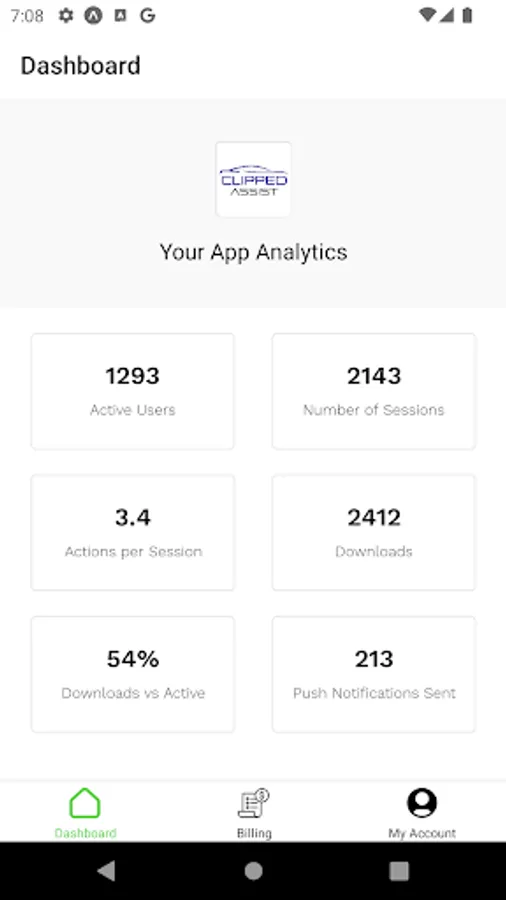 The iOS plugin allows you to track your app's performance, view your account billing and current saved account details.