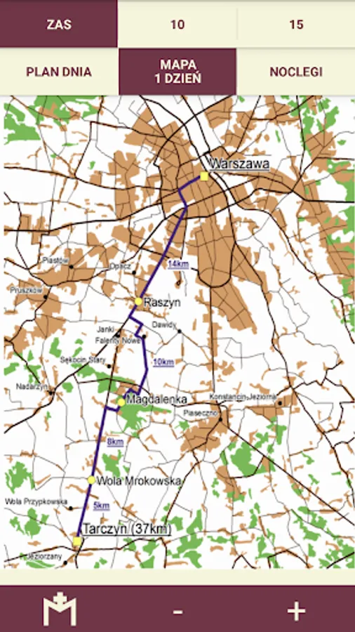 The application has the option of displaying the route and accommodation in on-line mode after switching the mode of operation. The default setting is off-line. Change of mode in the tab with routes.